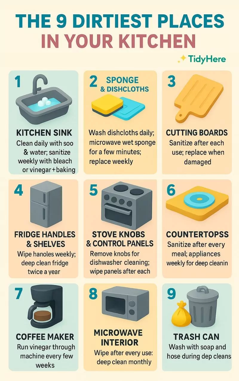 However, some of the dirtiest places in your home are in your kitchen, and you might be overlooking them when you clean. What are the 9 dirtiest places in your kitchen?